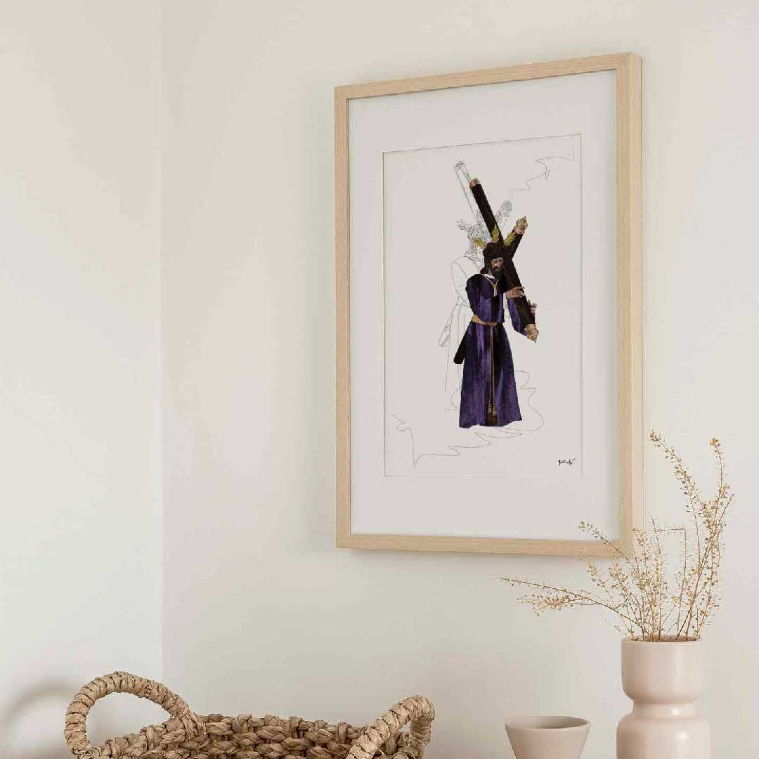 Lámina artística de alta calidad, edición limitada y numerada a 100 copias. Representación fiel y detallada de la virgen de la Esperanza de Triana. Ideal para devotos y coleccionistas. Impresión en papel de 280gr, con una técnica exclusiva.